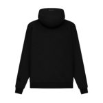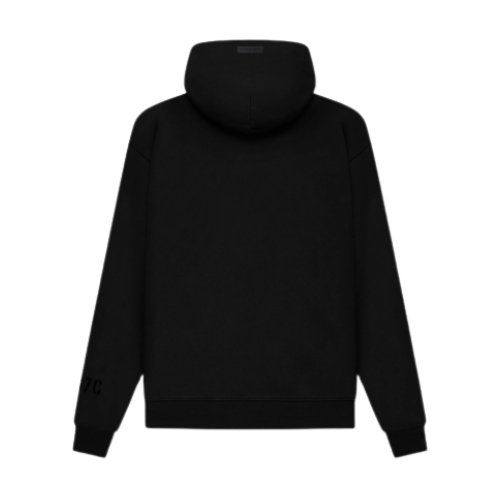 Sudadera con capucha negra Fear of God Essentials FG7C, estilo urbano con logo distintivo, ajuste oversize y tejido premium, perfecta para un look moderno y versátil.